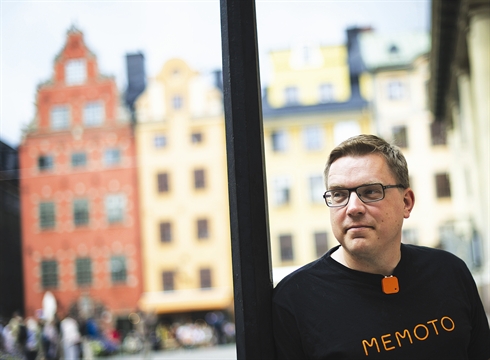 À 38 ans, ce Suédois, fondateur de la compagnie Memoto, n’a pas de temps à perdre pour faire connaître son appareil de «lifelogging», l’activité qui consiste à consigner sa vie sur support numérique.