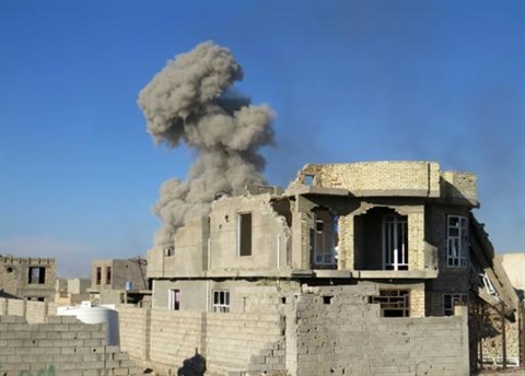 | De la fumée s'échappe d'un quartier de Ramadi après des combats entre forces irakiennes et jihadistes, le 27 décembre. |
