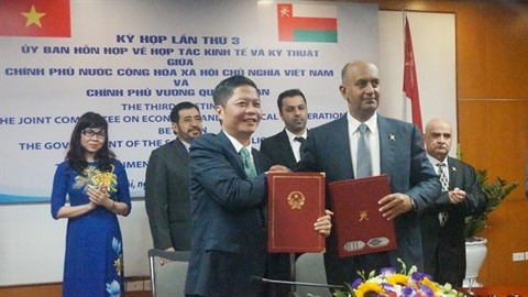 | Le ministre vietnamien de l'Industrie et du Commerce, Trân Tuân Anh (gauche), et son homologue omanais Ali bin Masoud Al Sunaidy, lors de la 3e réunion du Comité mixte de coopération économique et technique. |