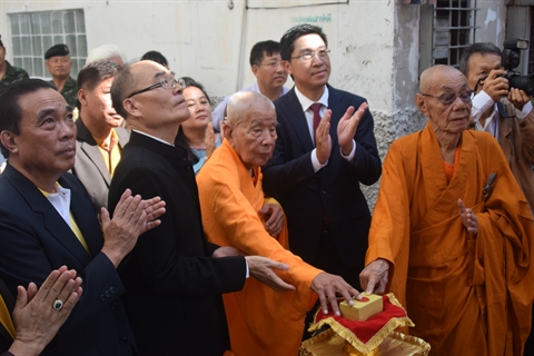 La cérémonie a eu lieu en présence du chef de la secte Annamnikaya, bonze supérieur Thich Kinh Chiêu, gérant de la pagode Phô Phuoc et du chargé d’affaire p.i de l’ambassade du Vietnam Pham Thành Nam, ainsi que des bonzes, des Viêt kiêu et des Vietnamiens travaillant ou étudiant en Thaïlande.