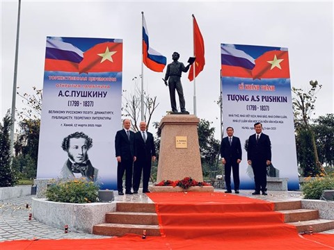 Selon l'ambassadeur de Russie au Vietnam, Konstantin Vnukov, la statue d'Alexandre Pouchkine située dans le parc Hoà Binh est un cadeau offert par l'Association des écrivains russes à l'administration et au peuple de Hanoï, à l'initiative de l'ambassade de la Russie au Vietnam en 2016.