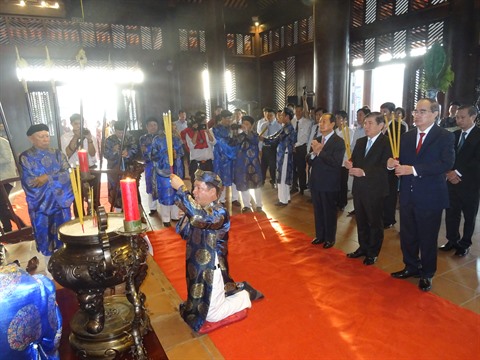 Lors de la cérémonie au culte du temple Lê Thanh Hau Nguyên Huu Canh au Parc de l'histoire et de la culture, 9e arrondissement, les dirigeants de haut rang et quelques milliers d’habitants de Hô Chi Minh ont mis des bâtons d’encens en mémoire et pour rendre hommage aux dévouements du mandarin militaire Nguyên Huu Canh, qui a établi la souveraineté territoriale vietnamienne sur le Sud.