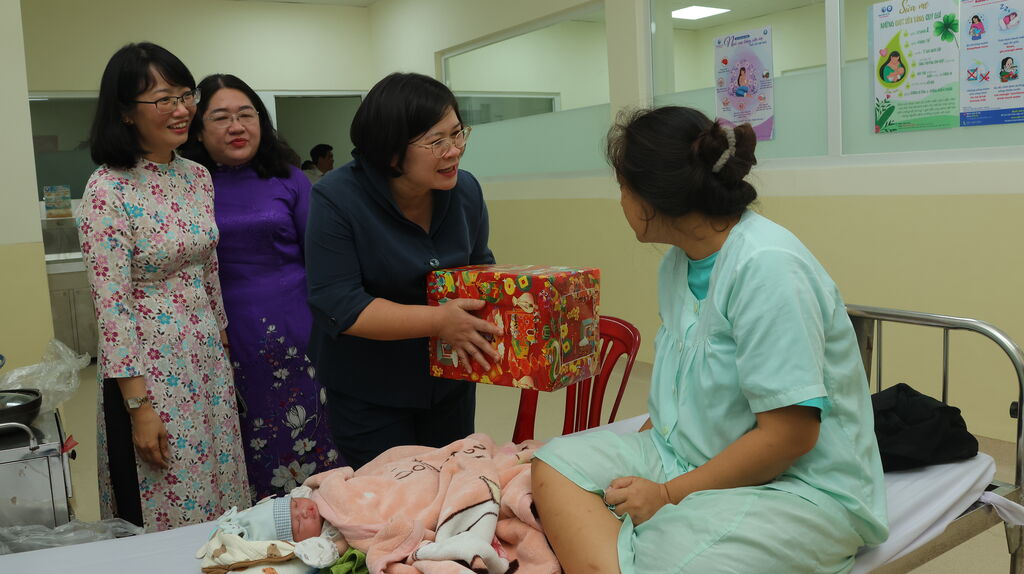 | Les dirigeants de la ville et de l’hôpital de Hoc Môn offrent des cadeaux aux patients. |