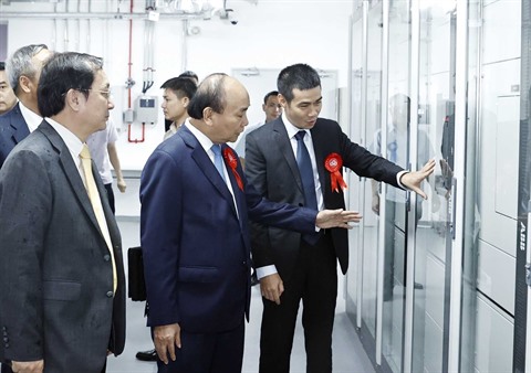 | Le président Nguyên Xuân Phuc (centre) en visite au centre CMC des données Tân Thuân, à Hô Chi Minh-Ville. |