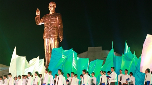 | Le monument de "L'Oncle Hô et les ethnies du Tây Nguyên", inauguré le 9 décembre à la place de la Grande Union (Dai Doan Kêt), au centre de la ville de Pleiku, province de Gia Lai. |