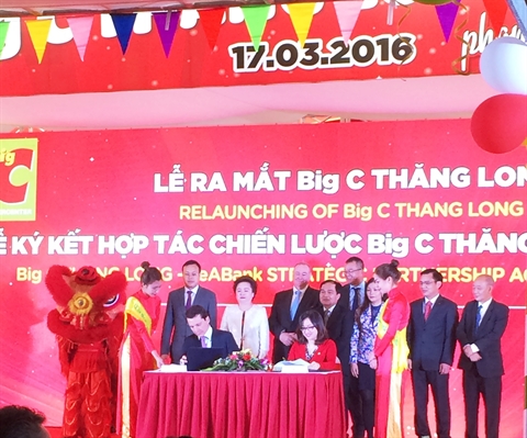Lors de l’inauguration du nouveau Centre commercial Big C Thang Long, la Sarl du commerce international et des services du supermarché Thang Long a signé un accord de coopération stratégique avec la Banque commerciale par actions Dông Nam A (SeAbank).
