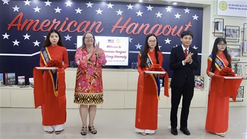 La cérémonie d’inauguration du "Point de rencontre des États-Unis" a été organisée par le conseil d’administration de l’Université d’An Giang et la consule des États-Unis à Hô Chi Minh-Ville, Marie Damour.