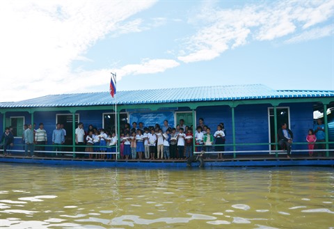 D'un coût total de 36.000 dollars, cette école flottante a été construite sur le lac Tonlé Sap. Elle comprend des salles de classe capables d'accueillir près de 200 enfants des plus de 600 foyers Viêt kiêu.