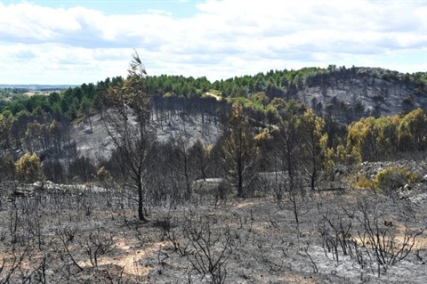 | Des arbres carbonisés à Saint-Pons-de-Mauchiens, dans l'Hérault, le 10 août. |