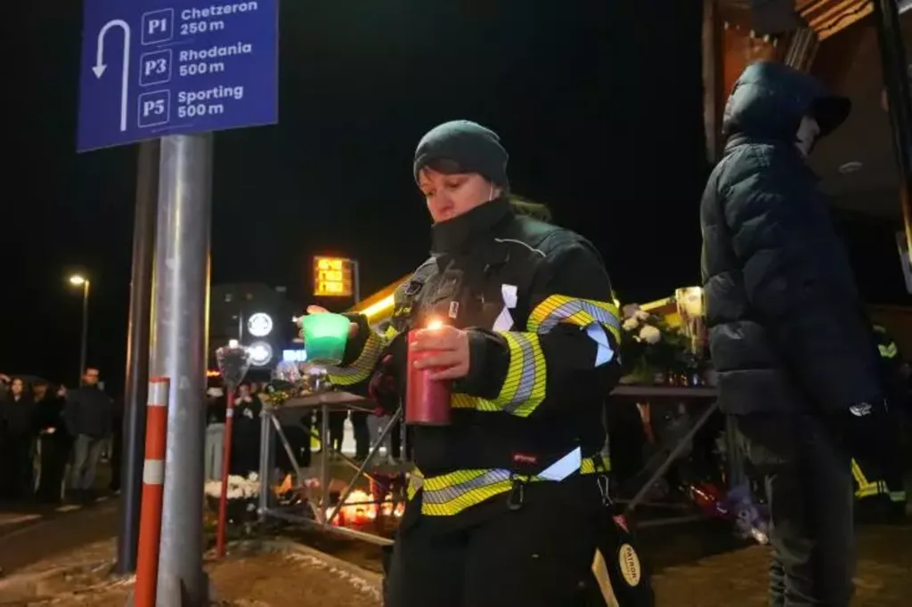 | Devant le Constellation, de nombreuses personnes viennent déposer des hommages aux victimes de l'incendie, le 1er janvier 2026. |