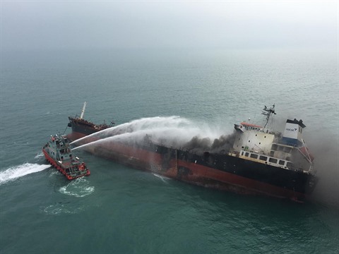 >>Un pétrolier en flammes dans les eaux hongkongaises, un mort