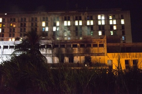| Le CHU de Pointe-à-Pitre partiellement détruit dans un incendie, le 28 novembre 2017 en Guadeloupe. |