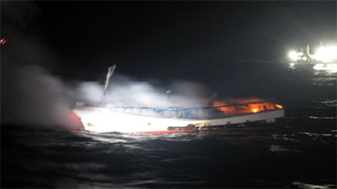 | Un navire de pêche de la République de Corée incendié au petit matin du 30 décembre. |
