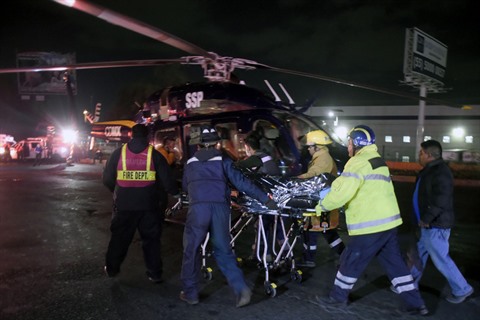 | Une personne est évacuée par hélicoptère près du péage de Tepotzotlan, à proximité de Tlahuelilpan où s'eszt déclenché le feu, le 18 janvier 2019. |