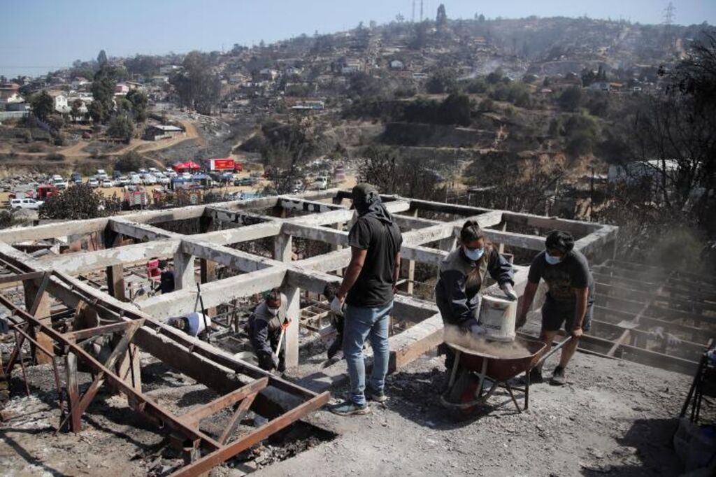 | Des habitants enlèvent les débris des maisons à Villa Independencia, au Chili, le 5 février. |