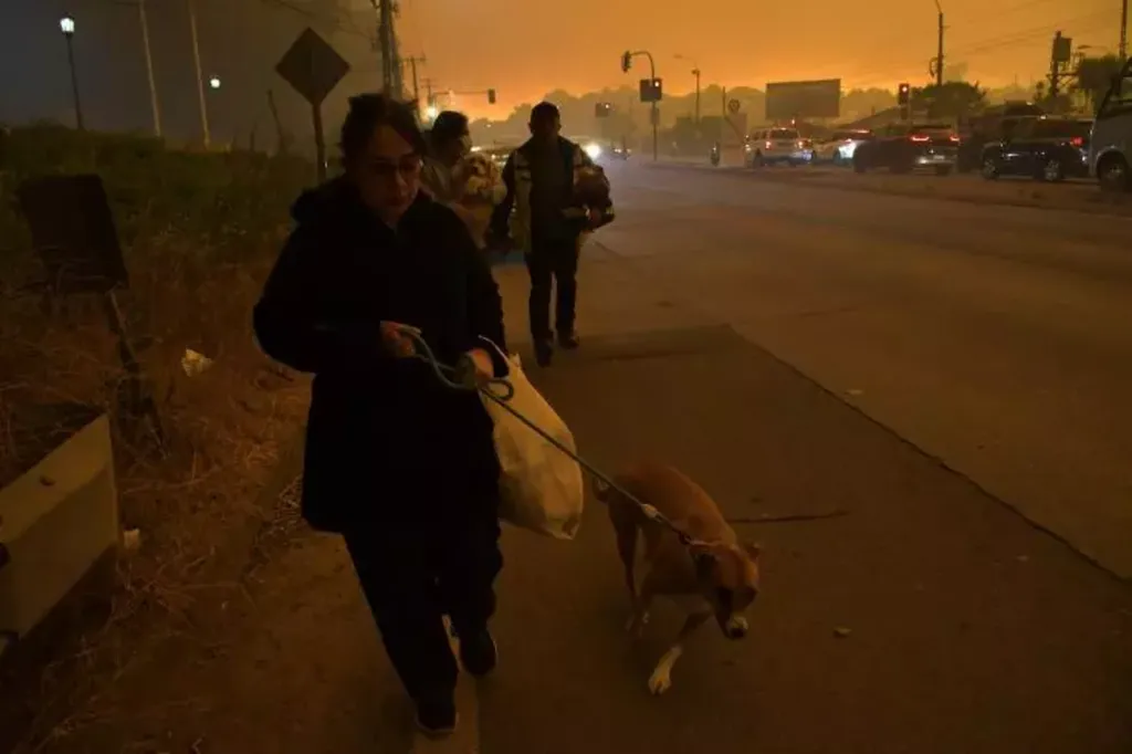 | Des habitants fuient l'avancée du feu à Concepcion, au Chili, le 18 janvier. |