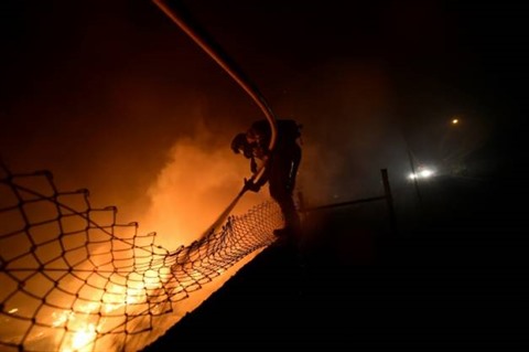 | Un pompier lutte contre les flammes à Vigo, en Espagne, le 15 octobre. |