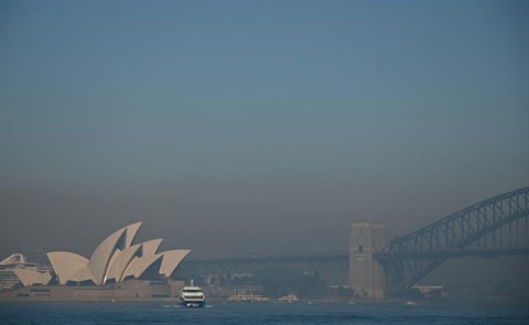 | Un nuage de fumée enveloppe Sydney, le 19 novembre en Australie. |