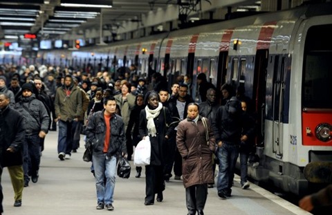 | Un RER à la gare de la Défense, à Paris, le 29 janvier 2009. |