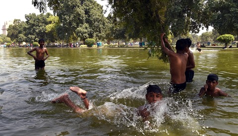 | Les enfants nagent pour éviter la chaleur le 7 juin. |