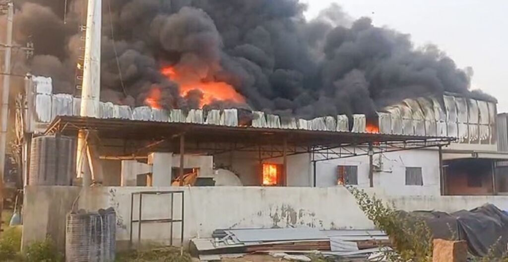 | L'incendie d'une usine chimique dans l'Est de l'Inde fin 2023. |
