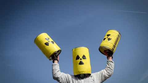 | Un militant antinucléaire lors d'une manifestation réclamant la fermeture de la centrale de Fessenheim (Haut-Rhin), en mars 2017. |