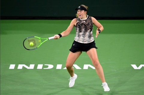 | Jelena Ostapenko pendant son match contre Shelby Rogers, le 13 octobre à Indian Wells. |