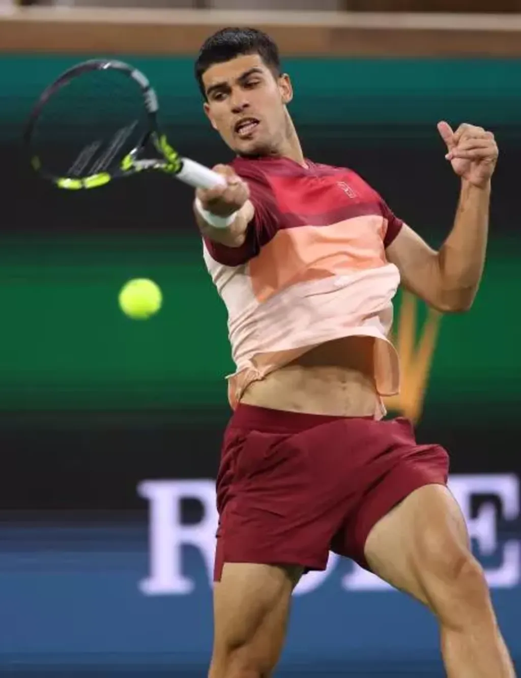 | Carlos Alcaraz au 3e tour du Masters 1000 d'Indian Wells, le 10 mars. |