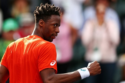 | Le N°1 français Gaël Monfils après sa victoire contre l'Espagnol Albert Ramos-Vinolas, le 11 mars à Indian Wells. |
