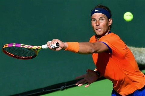 | Rafael Nadal affrontant Reilly Opelka lors du tournoi d'Indian Wells, le 16 mars en Californie. |