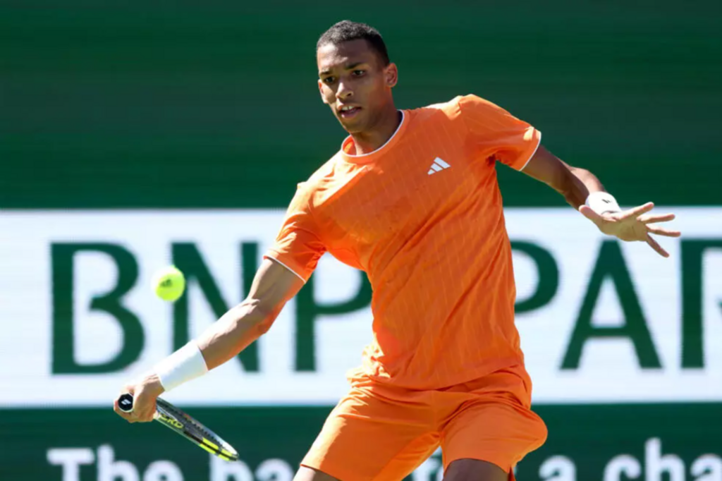| Félix Auger-Aliassime opposé à Arthur Fils à Indian Wells, en Californi, le 10 mars. |