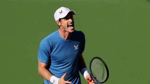 | L'Écossais Andy Murray ému après sa victoire en trois sets contre la jeune pépite espagnole Carlos Alcaraz à Indian Wells, le 10 ocotbre. |