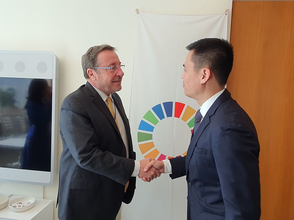 | Rencontre entre l'ambassadeur Dang Hoàng Giang (droite) et le directeur général du PNUD, Achim Steiner. |