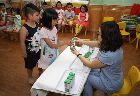 | Le programme de distribution de lait dans les écoles maternelles est mis en place pour lutter contre la malnutrition chez les enfants. |