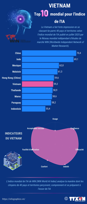 Le Vietnam figure parmi les premiers pays de l'indice mondial de l'IA