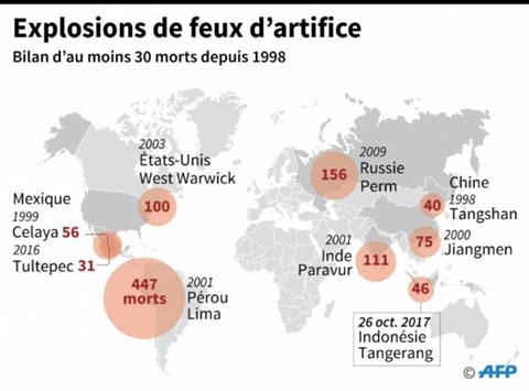 | Explosions meurtrières de feux d'artifice. |