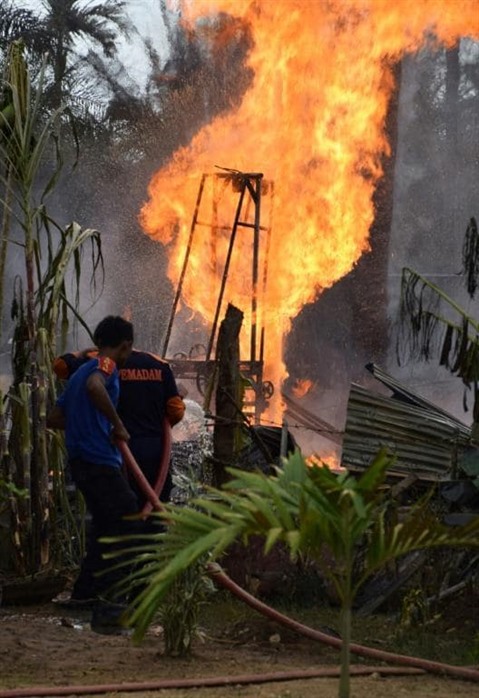 Des images diffusées sur les réseaux sociaux montraient de gigantesques flammes s'élever dans le ciel au-dessus de maisons et de palmiers, en présence de curieux rassemblés près des lieux du drame. Des pompiers continuaient de déverser de l'eau pour tenter de venir à bout de l'incendie, avec l'aide d'employés de la compagnie pétrolière nationale Pertamina, équipés de matériel spécial pour ce genre d'incident.