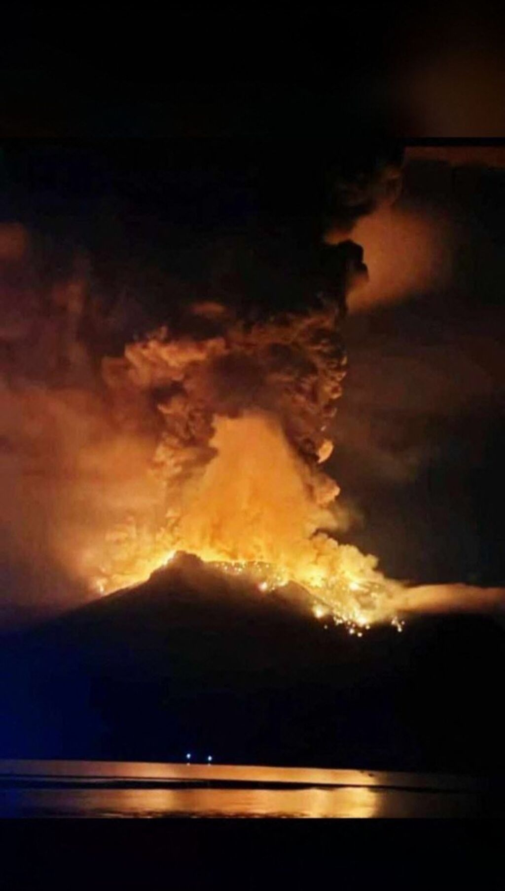 | Le volcan Ruang lors d'une éruption, le 17 avril. |