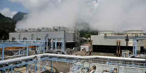 | La centrale géothermique de Wayang Windu, sur l'île indonésienne de Java, qui produit de l'électricité grâce à un volcan. |