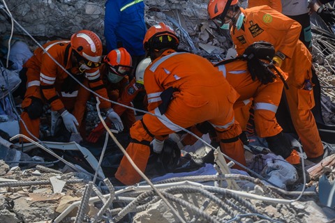| Chercher des victimes sous les décombres à Palu. |