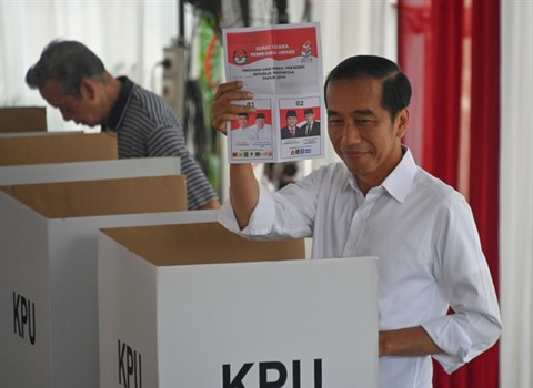 | Le président indonésien sortant Joko Widodo vote à Jakarta, le 17 avril. |