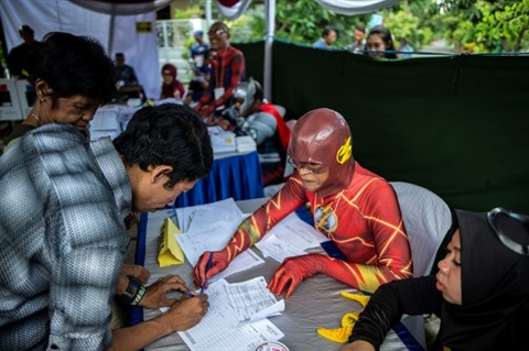 Afin d'assurer une forte participation, les scrutateurs d'un bureau de vote du Sud de Jakarta se sont déguisés en fantômes et vampires pour accueillir les électeurs, tandis qu'à Surabaya (province de Java orientale) ils ont adopté des panoplies de superhéros.