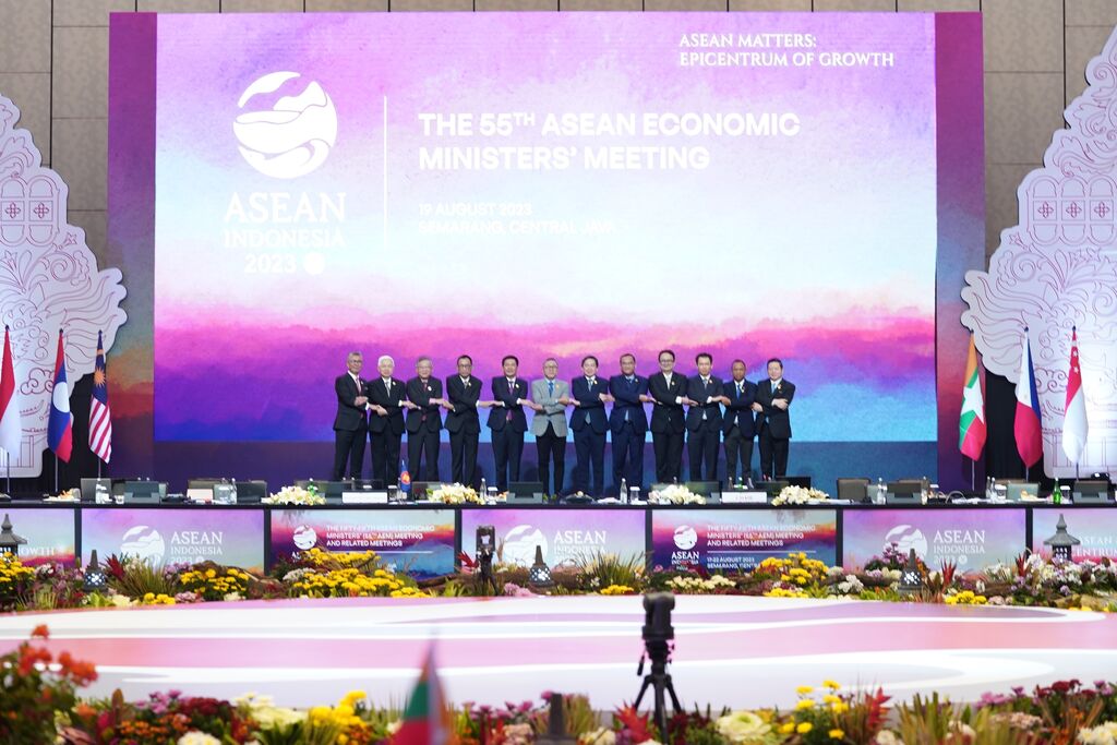 | Les chefs des délégations participant à la 55e réunion des ministres de l'Économie de l'ASEAN (AEM-55) à Semarang, en Indonésie. |