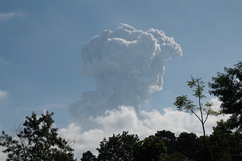 L'Agence nationale de volcanologie a déclaré que le vent soufflait à l'ouest du cratère et que les résidents vivant près du volcan qui est situé sur la principale île de Java en Indonésie sont interdits d'entrer dans la zone dans un rayon de 3 km du cratère.