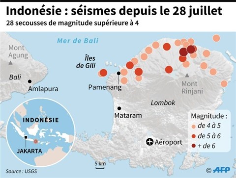 La secousse a également été ressentie à Mataram, la capitale de l'île, et sur l'île touristique voisine de Bali.