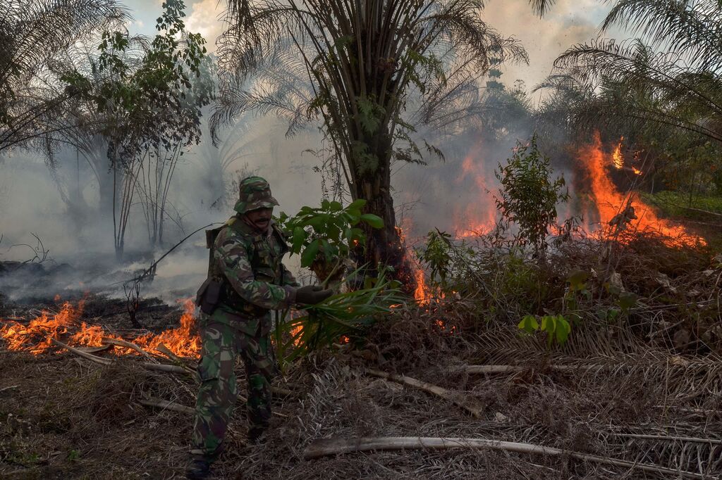 | Efforts pour éteindre un incendie à Riau, en Indonésie. |