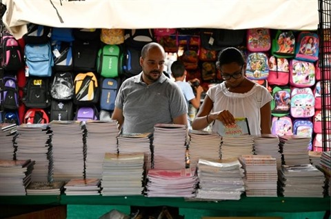 | Des parents d’élèves achètent des fournitures scolaires à Caracas, le 11 septembre 2019. |