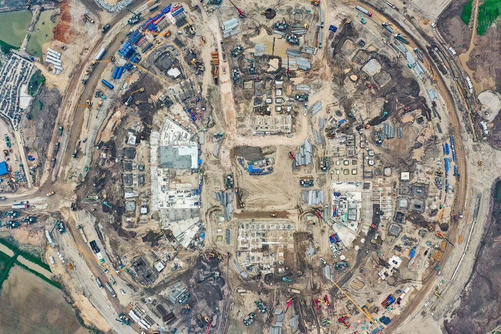 | Sur le chantier du complexe sportif olympique à Hanoï. |