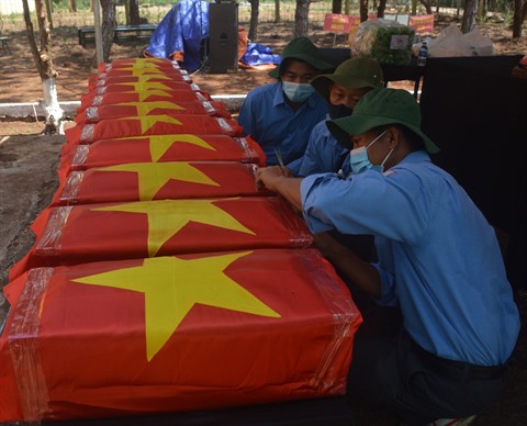 | Les restes de 12 soldats inhumés dans le district de Chu Pah, province de Giai Lai (hauts plateaux du Centre), le 18 mai. |