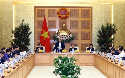 | Le Premier ministre Nguyên Xuân Phuc dirige la réunion du sous-comité socioéconomique préparant le XIIIe Congrès national du Parti, le 4 mars à Hanoï. |